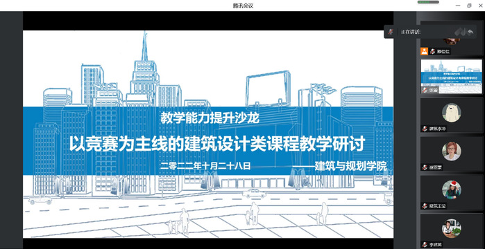 10月28日下午,建筑与规划学院开展了“以竞赛为主线的建筑设计类课程教学研讨”沙龙活动,学校教师教学发展处、相关教学单位教师参与了交流学习。活动由建筑与规划学院建筑学教研室主任滕佳佳主持,副院长张蕾副作主题发言,建筑学教研室各年级负责人参与了研讨发言。本次活动以学科竞赛为主线,对“开放式”、“对接性”、“重实践”、“强能力”的育人模式、“对标行业”的育人标准、“赛教结合”的育人过程进行深度交流探讨,将学科竞赛融入到各年级的设计类课程专题中,力求达到“以赛促学、以赛促行”的培养模型、“以赛促教、以赛促改”的培养手段、“以赛促训、以赛促建”的改革思路,进一步推动建筑与规划学院的学科建设发展。