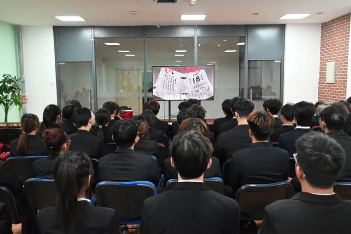 同时,校团委组织各学院学生集中观看“九一八”纪录片。影片通过档案影像与幸存者口述,还原了1931年东北大地的苦难与抗争。观影后,学生们纷纷表示:“历史警钟时刻在耳畔回响,我们要以自强不息的精神,将内心涌动的爱国之情,转化为脚踏实地的报国之行!”