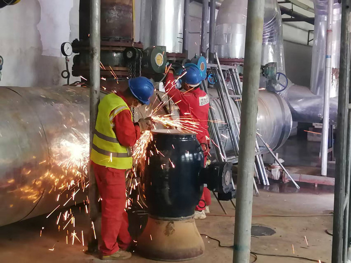 三、优化供热管道系统配置,提升管网调控能力。精准定位热力外网与校园内网供回水热管道交接部位点,对供回水管道进行敷接改造作业,对管道承压薄弱段针对性实施改造。同时对原锅炉热源管道采用高压耐高温不锈钢盲板封堵技术,进行多层密封处理,彻底切断废弃管道的安全隐患,进一步优化管道调控精度,提升系统应急保障能力。