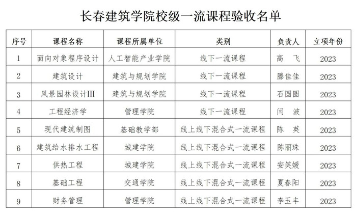 围绕课程质量提升,教务处按照《长春建筑学院课程建设方案》《长春建筑学院一流课程建设与管理办法》,于9月12日开展2025年校级一流课程建设项目验收,涉及面向对象程序设计、建筑设计等9门2023年立项课程,涵盖线下、线上线下混合式两类一流课程。建设期间,各课程团队以“两性一度”为标准,线下课程融入行业前沿案例强化互动实践,混合式课程依托平台构建“线上自主学习+线下深度研讨”模式,此次验收既是对建设成果的全面检验,也为优质教学资源共享、申报更高层级课程奠定基础,持续夯实学校人才培养“第一课堂”根基。