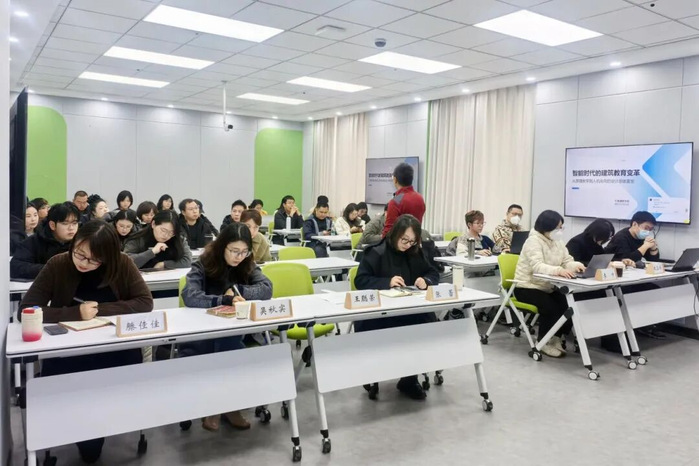 为推动AI技术与建筑类教育深度融合,将首次研讨会达成的理念共识转化为可落地的教学方案,11月5日上午,学校建筑与规划学院举办“AI赋能建筑教育——课程体系构建与实践落地研讨会”(系列研讨会Ⅱ)。本次研讨聚焦解构智能时代建筑教育变革新范式与跨专业协同机制,通过主题报告、案例演示、互动研讨等形式,共同探索AI赋能建筑教育的具象路径。学校教务处副处长吴秋实,学院特聘专家王聪荣教授,以及学院全体教师参加。