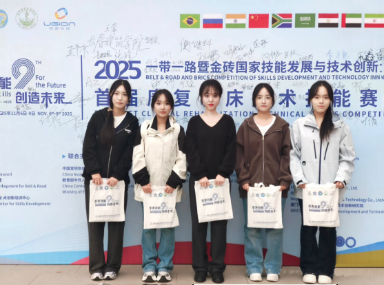 近日,2025“一带一路”暨金砖国家技能发展与技术创新大赛首届康复临床技术技能赛项圆满收官。学校健康产业学院康复治疗学专业王辛亦、张煜、姜虹旭、张紫萱4名学生组成的参赛团队,凭借扎实过硬的专业功底、灵活出色的实践能力与高度默契的团队协作,从48所院校的63支参赛队伍中脱颖而出,荣获三等奖2项。