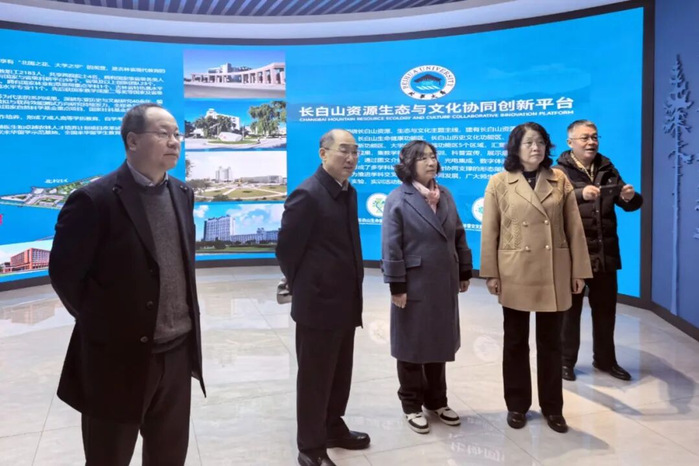 上午,任玉珊一行到北华大学。在北华大学党委书记许适琳等领导陪同下,首先参观了长白山资源生态与文化协同创新平台,并开展了友好交流。