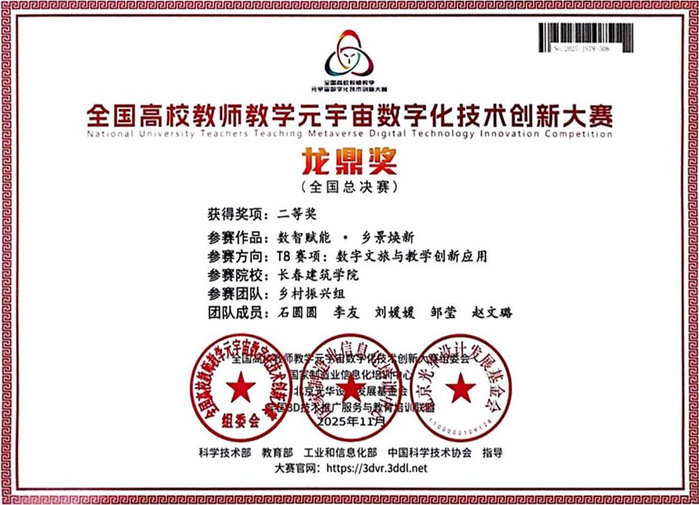 近日,2025第6届全国高校教师教学元宇宙数字化技术创新大赛全国总决赛圆满落幕。学校建筑与规划学院、土木工程学院教师团队凭借教学数字化改革与创新实践,荣获国家级二等奖1项、三等奖1项,为学校赢得了荣誉。