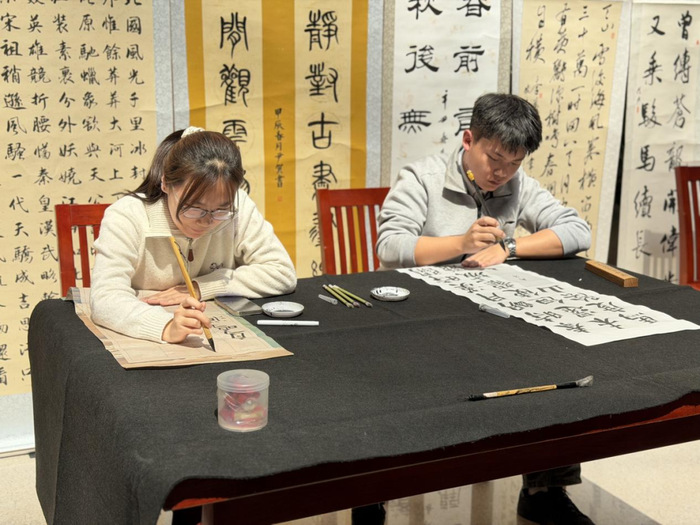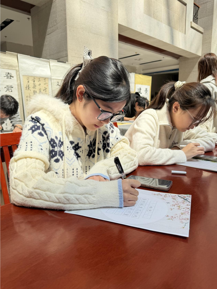 本届传统文化赛事在传统软笔、硬笔书法组别基础上,首次增设了国画组别,让书法与国画两大国粹艺术在校园同台绽放、交相辉映。软笔书法、硬笔书法、国画三大组别同步开赛,既优化了活动流程,也为参赛者营造了从容舒展、专注投入的创作氛围。活动现场专设文房四宝展示区与优秀作品赏析区,吸引众多师生驻足观摩,大家在笔墨丹青间沉浸式感受中华优秀传统文化的深厚底蕴与独特魅力。