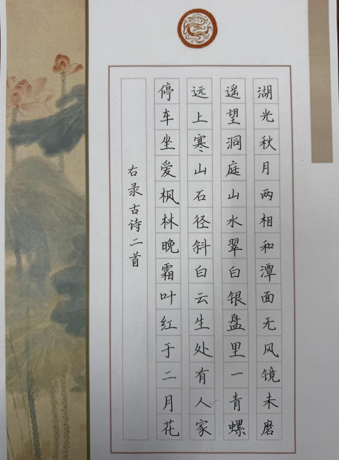 硬笔书法专场同样亮点纷呈。相较于软笔的写意挥洒,硬笔更强调线条精准与结构严谨。参赛选手们手执钢笔、中性笔,在专用书写纸上潜心书写,作品或笔力刚劲、沉稳大气,或字迹娟秀、工整温润。从“为中华之崛起而读书”的铿锵誓言,到《春江花月夜》的诗意篇章,一笔一画尽显扎实功底。参赛者们或严守楷书规范、精益求精,或兼顾行书流畅、于规整中求变化。现场秩序井然,唯有笔尖触纸的沙沙声响与此起彼伏的由衷赞叹,尽显书香校园的文雅气息。
